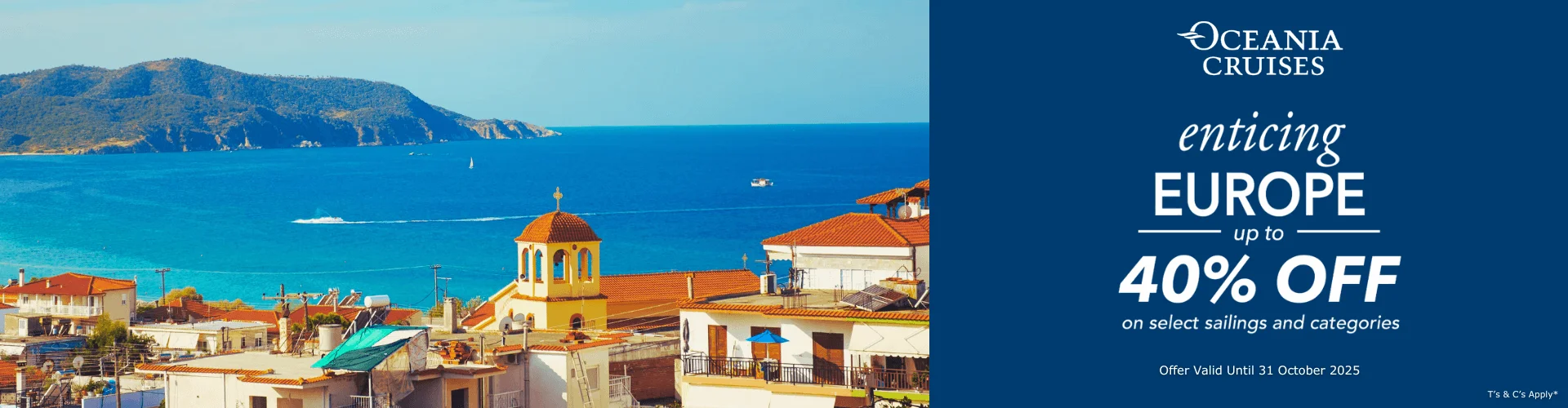 Promotional offers advertised are subject to additional terms, conditions and restrictions. All offers are capacity controlled and may be withdrawn or amended without prior notice. Certain promotions are valid for specific booking windows and sailing dates only.